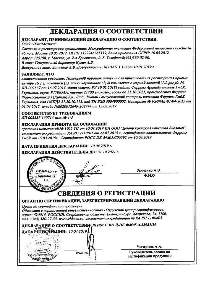 Противопоказания. Прежде чем купить Пикопреп, следует исключить гиперчувствительность к препарату. Также Picoprep противопоказан при нарушениях функций почек, язве, хронических проблемах с сердцем, остром аппендиците. Пикопреп не назначается беременным и кормящим женщинам, и детям до 9 лет.